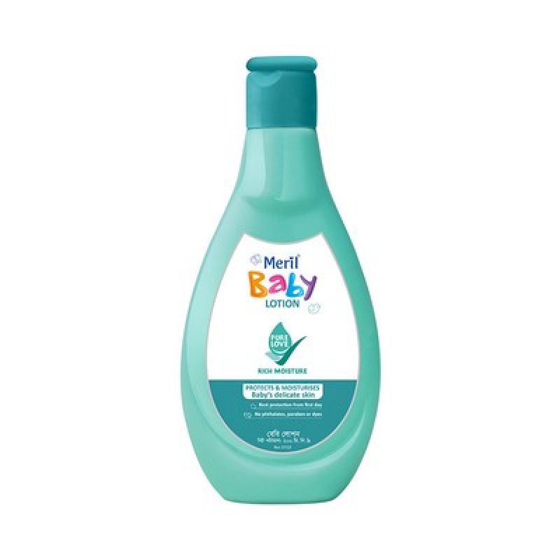 Meril Baby Lotion 200ml for Baby Skin This Meril Baby Lotion (200ml) is specially formulated to give your baby the finest care for their tender skin. This particular lotion is soothing and extra mild; for this reason, it promotes softness and helps protect the delicate skin of your baby. It can mainly moisturize the skin and make it softer and smoother without any negative impacts. Many mothers prefer this lotion because of its gentle formulas, which are fit for use in newborn and infant-age children. Since it is for everyday use and recommended for any season, the lotion can be used at all times to ensure the skin of a baby is nourished. You can find the price in BD for this trusted product online and in stores. Safe and Trusted by Mothers.